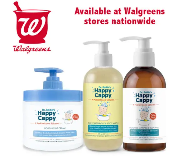 Dr. Eddie of Happy Cappy® is pleased to announce that his signature products Happy Cappy Daily Shampoo & Body Wash and Happy Cappy Moisturizing Cream are now available in 4,500 Walgreens stores across the country! Pediatrician Dr. Eddie Valenzuela created Happy Cappy to provide children and adults with gentle, effective solutions for eczema symptoms and flare-ups. These two popular Happy Cappy products will join a third already widely available at Walgreens stores: Dr. Eddie’s Happy Cappy Medicated Shampoo & Body Wash.
