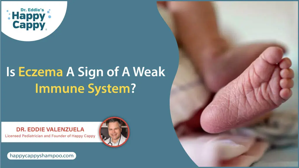 No, having eczema does not mean you have a weak immune system. However, it does mean that your immune system is oversensitive or overactive and may try to protect your body against irritants that may not be harmful to you.