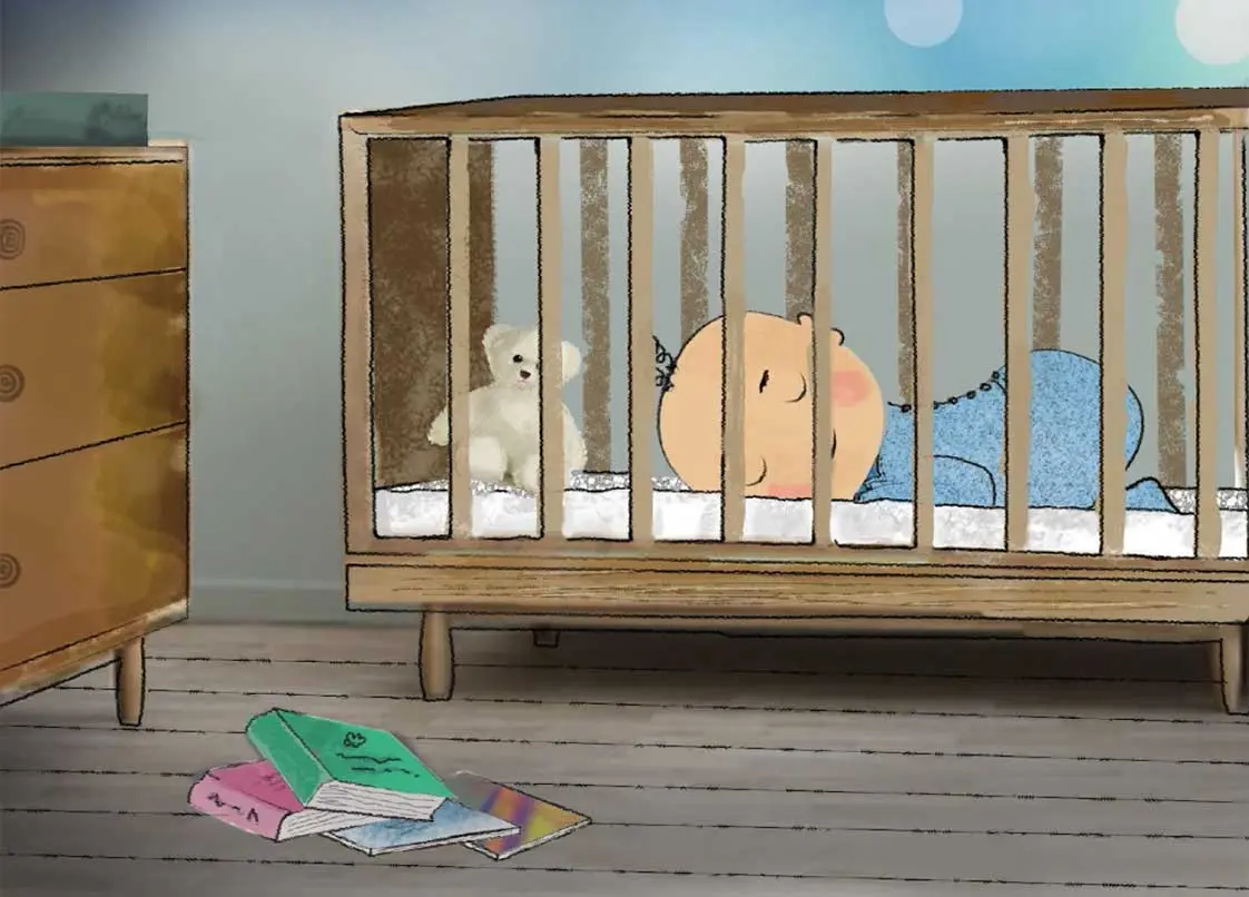 Resist the urge to swoop in and rock them back to sleep when your baby wakes up repeatedly. It’s a myth that babies need to be rocked gently to fall asleep, and it’s actually counterproductive when trying to return your child to good habits.