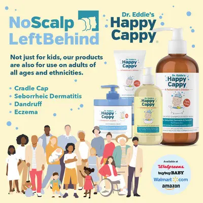Happy Cappy® proudly announced the launch of a new marketing campaign under the recently trademarked tagline: “No Scalp Left Behind®.” Happy Cappy® already has multiple parenting awards and accolades to attest to its uniquely positive effects on conditions like infant seborrheic dermatitis (cradle cap) – a common condition that affects one in three children under the age of five. But maker and founder, Dr. Eddie Valenzuela, wanted to widen the public’s awareness that the irritant free formulations found in the two shampoo and body washes and moisturizing cream are also perfect for other age groups with sensitive skin conditions – like older children, teenagers, and adults.